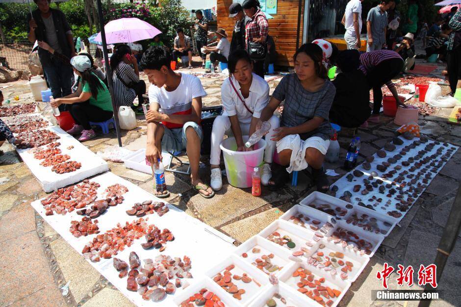 6月3日,四川凉山州西昌中国最大南红玛瑙交易市场商贾小贩穿插其间,别有一番景象。前不久,盛产南红玛瑙的凉山州美姑县被媒体再次曝光,当地采取措施进一步加强对玛瑙采矿区的监管,不过,该市场交易行情并未受到影响,价格平稳。