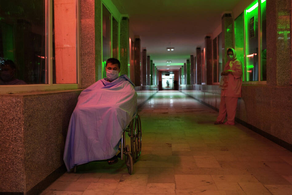 一个月后,我收到一个电话。加法尔的身体对移植的肾脏有排斥反应,他没能活下来。在葬礼上,一群人围着他的新坟默默转圈。纳琳的肾脏和他一起被埋葬。图为术后三天的加法尔,看起来一切似乎是好的,尽管疼痛,但他越来越能够行走。